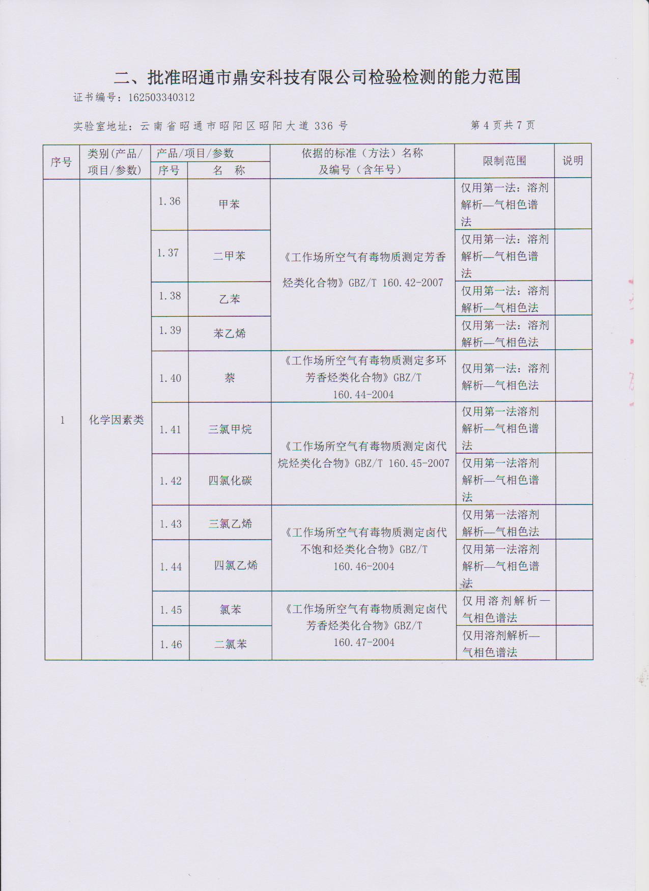 經(jīng)技術(shù)評(píng)審審核認(rèn)定的檢測(cè)項(xiàng)目(第一類業(yè)務(wù) 合計(jì)110項(xiàng))