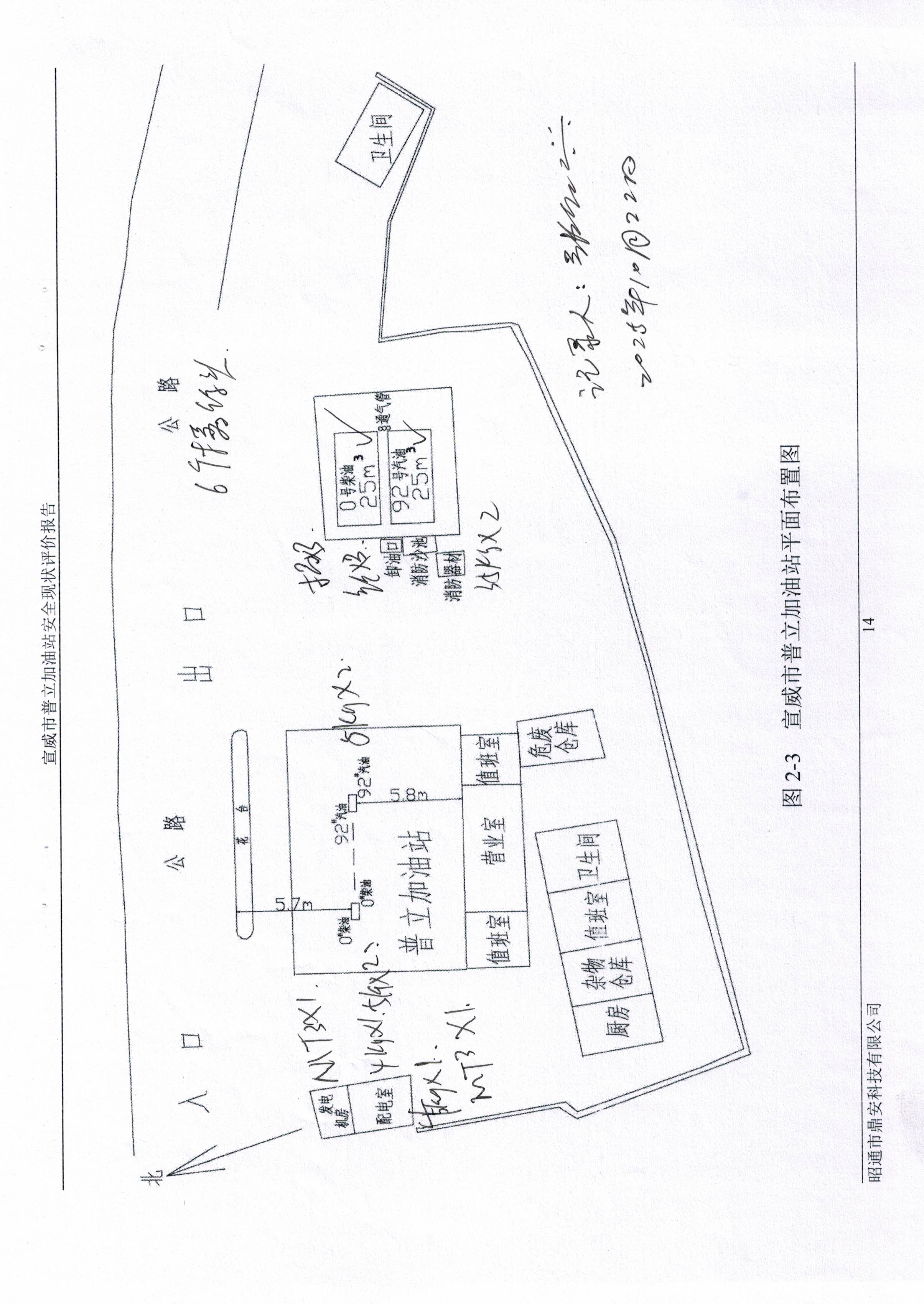 評價結(jié)論為:宣威市普立加油站已完成本次評價發(fā)現(xiàn)的不符合項整改,站址選擇及平面布置、加油工藝及設(shè)施、消防設(shè)施、電氣及報警系統(tǒng)、建(構(gòu))筑物等方面符合《汽車加油加氣加氫站技術(shù)標準》(GB50156-2021)、《加油站作業(yè)安全規(guī)范》(AQ3010-2022)標準規(guī)定;經(jīng)營場所、危險化學品儲存設(shè)施、人員配置及培訓考核、安全管理制度、安全操作規(guī)程、應急預案、應急物資滿足《危險化學品安全管理條例》(國務院令第591號,第645號修改)第三十四條、《危險化學品經(jīng)營許可證管理辦法》(原國家安監(jiān)總局令第55號公布,第79號修正)第六條要求,從安全的角度宣威市普立加油站具備危險化學品經(jīng)營的安全條件。 | ||||||||