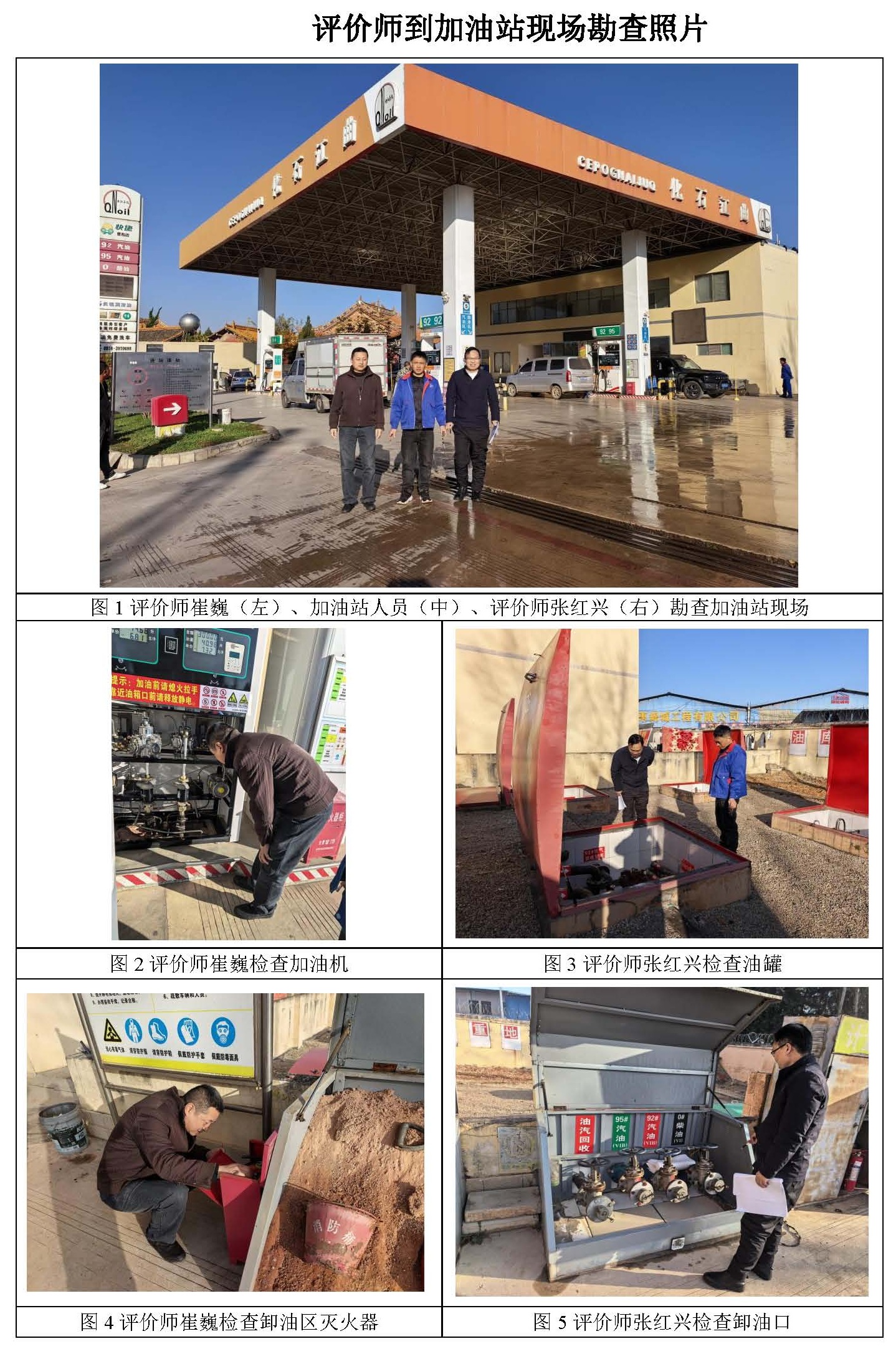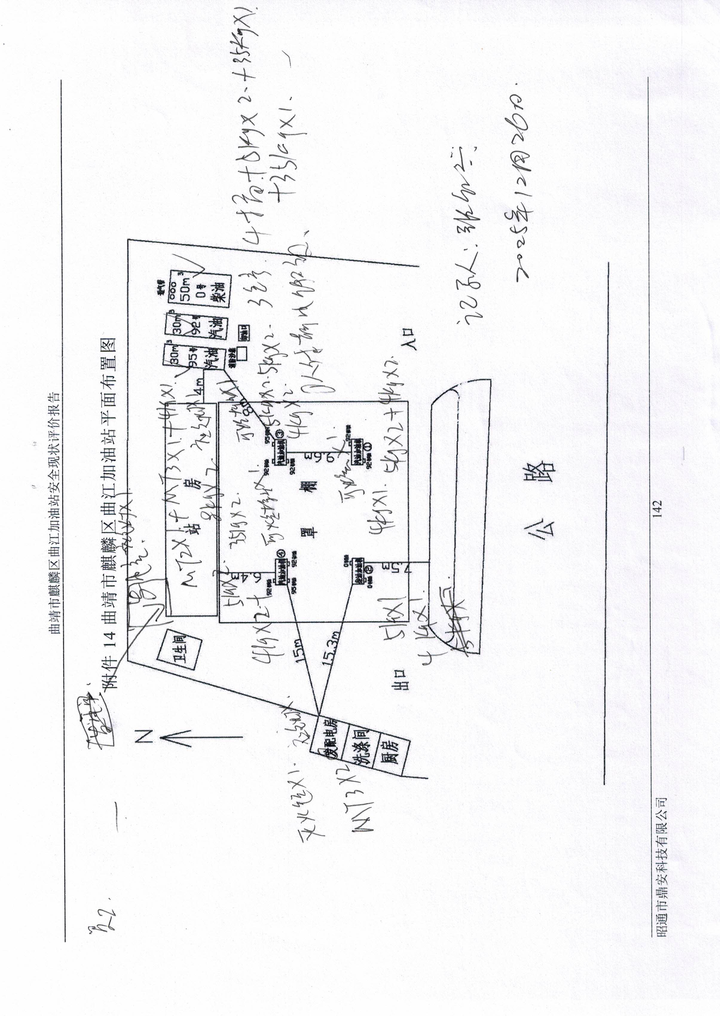 評價結(jié)論為:曲靖市麒麟?yún)^(qū)曲江加油站已完成本次評價發(fā)現(xiàn)的不符合項整改,站址選擇及平面布置、加油工藝及設(shè)施、消防設(shè)施、電氣及報警系統(tǒng)、建(構(gòu))筑物等方面符合《汽車加油加氣加氫站技術(shù)標(biāo)準(zhǔn)》(GB50156-2021)、《加油站作業(yè)安全規(guī)范》(AQ3010-2022)標(biāo)準(zhǔn)規(guī)定;經(jīng)營場所、危險化學(xué)品儲存設(shè)施、人員配置及培訓(xùn)考核、安全管理制度、安全操作規(guī)程、應(yīng)急預(yù)案、應(yīng)急物資滿足《危險化學(xué)品安全管理條例》(國務(wù)院令第591號,第645號修改)第三十四條、《危險化學(xué)品經(jīng)營許可證管理辦法》(原國家安監(jiān)總局令第55號公布,第79號修正)第六條要求,從安全的角度曲靖市麒麟?yún)^(qū)曲江加油站具備危險化學(xué)品經(jīng)營的安全條件。 | ||||||||